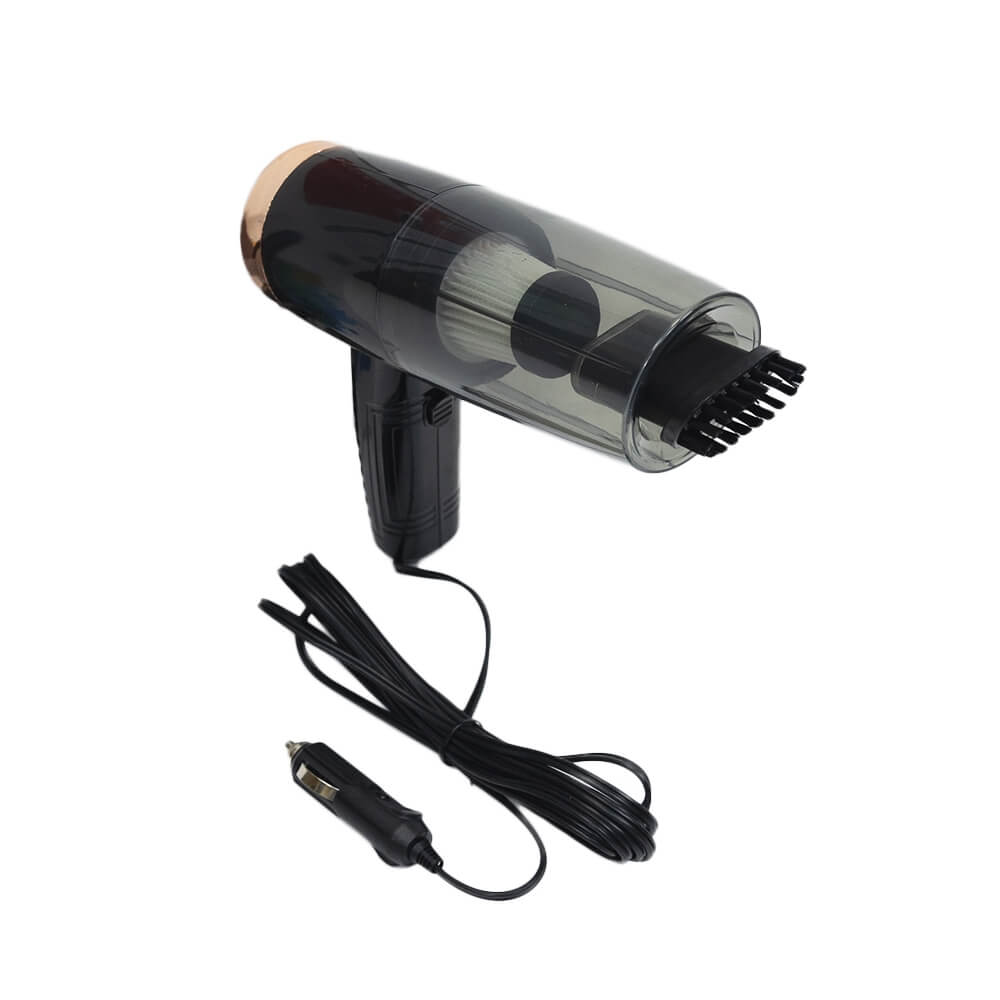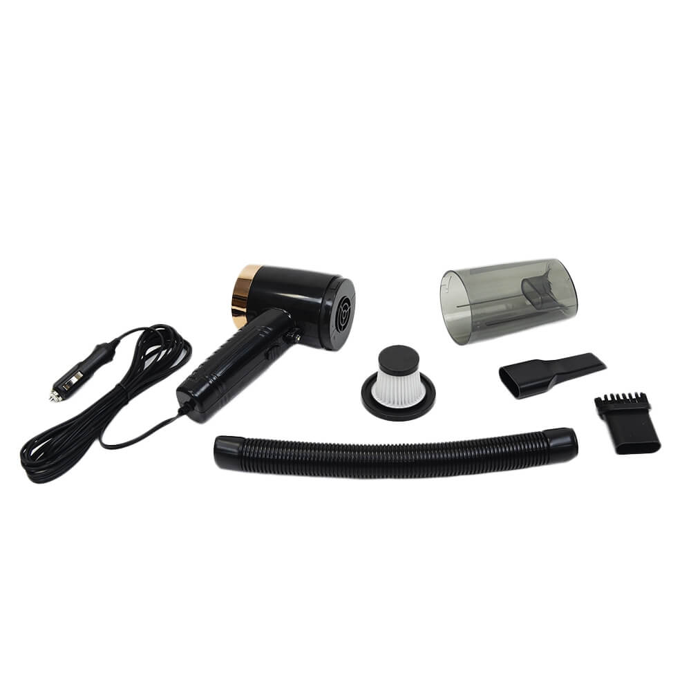 Пылесос мощностью 120 Вт. Оборудован циклоном и фильтром тонкой очистки воздуха HEPA. В комплекте есть несколько насадок, включая гофрированную трубу для уборки в труднодоступных местах. Длинный провод, около пяти метров, позволяет очищать все внутреннее пространство автомобиля, включая багажник. Питается пылесос от бортовой сети автомобиля через гнездо прикуривателя.