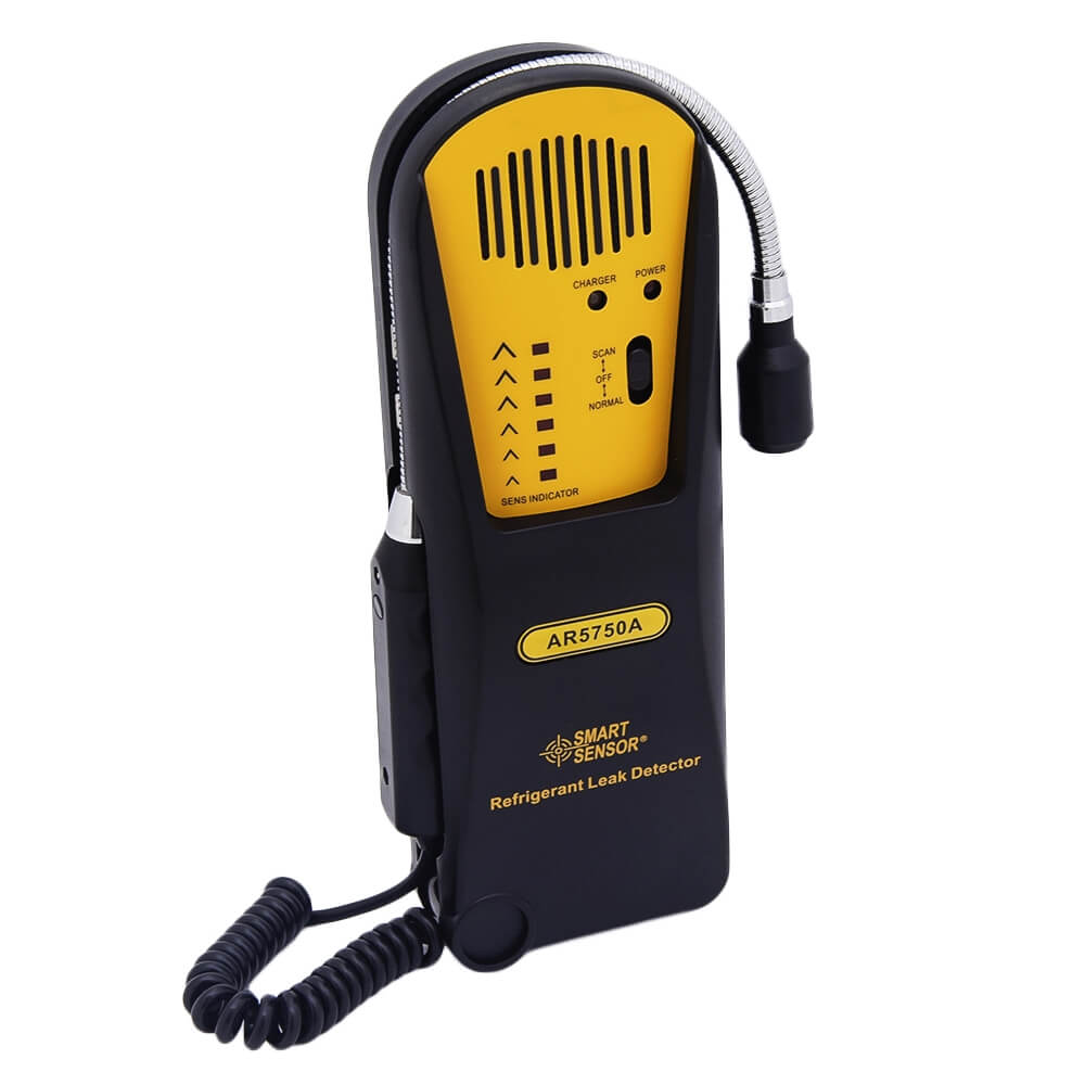 Портативный прибор для обнаружения утечки хладагента. Преимущественно используется в мастерских по ремонту холодильников. Выносной датчик позволяет быстро локализовать место утечки опасных веществ. В случае превышения установленной нормы срабатывает звуковая и световая сигнализации. Время отклика на утечку составляет менее 1 секунды. Для хранения и переноски прибора предусмотрен пластиковый кейс.