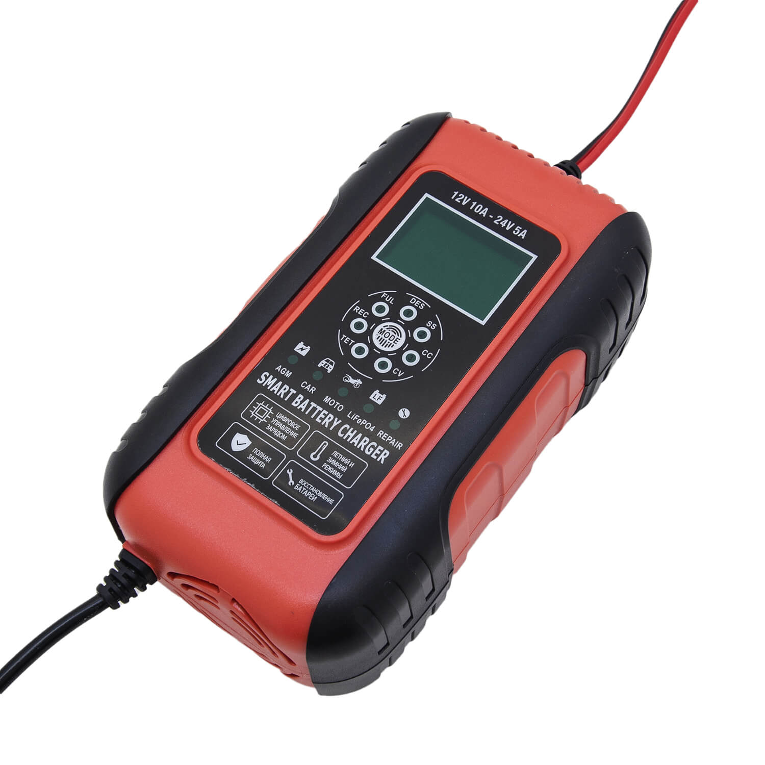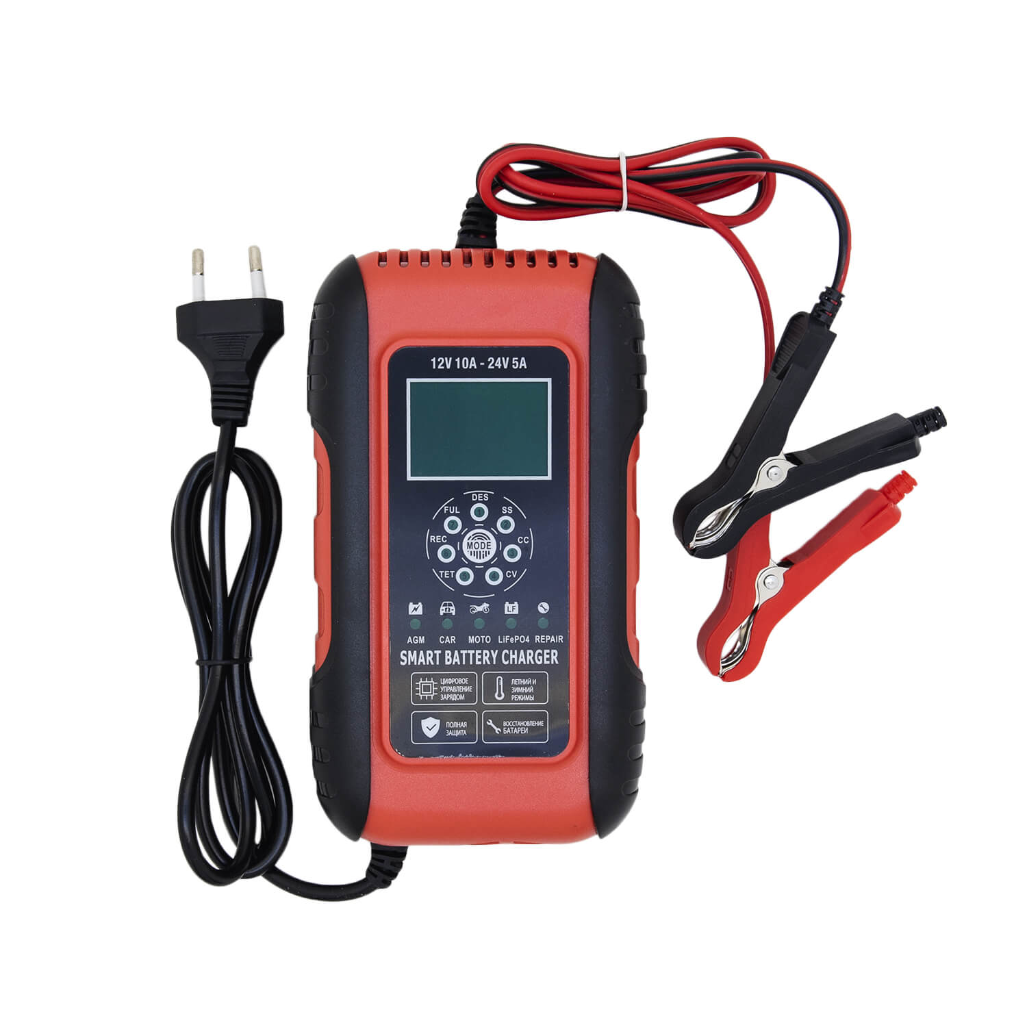 Зарядное устройство для аккумулятора, автомобильного АКБ E-FAST 12V 10A / 24V 5A с 7 ступенями зарядки подходит для большинства видов батарей. Зарядка аккумулятора автомобиля поддерживает все нужные системы защиты, в том числе от перезарядки, благодаря чему ее можно оставлять подключенной на неопределенный срок. Устройство ПЗУ имеет компактный корпус, провода легко отключаются, поэтому при хранении оно не занимает много места. Пуско зарядное устройство имеет цифровой экран с подсветкой, через который можно посмотреть статус зарядки, проверить заряженность аккумулятора или увидеть уведомление об ошибке.