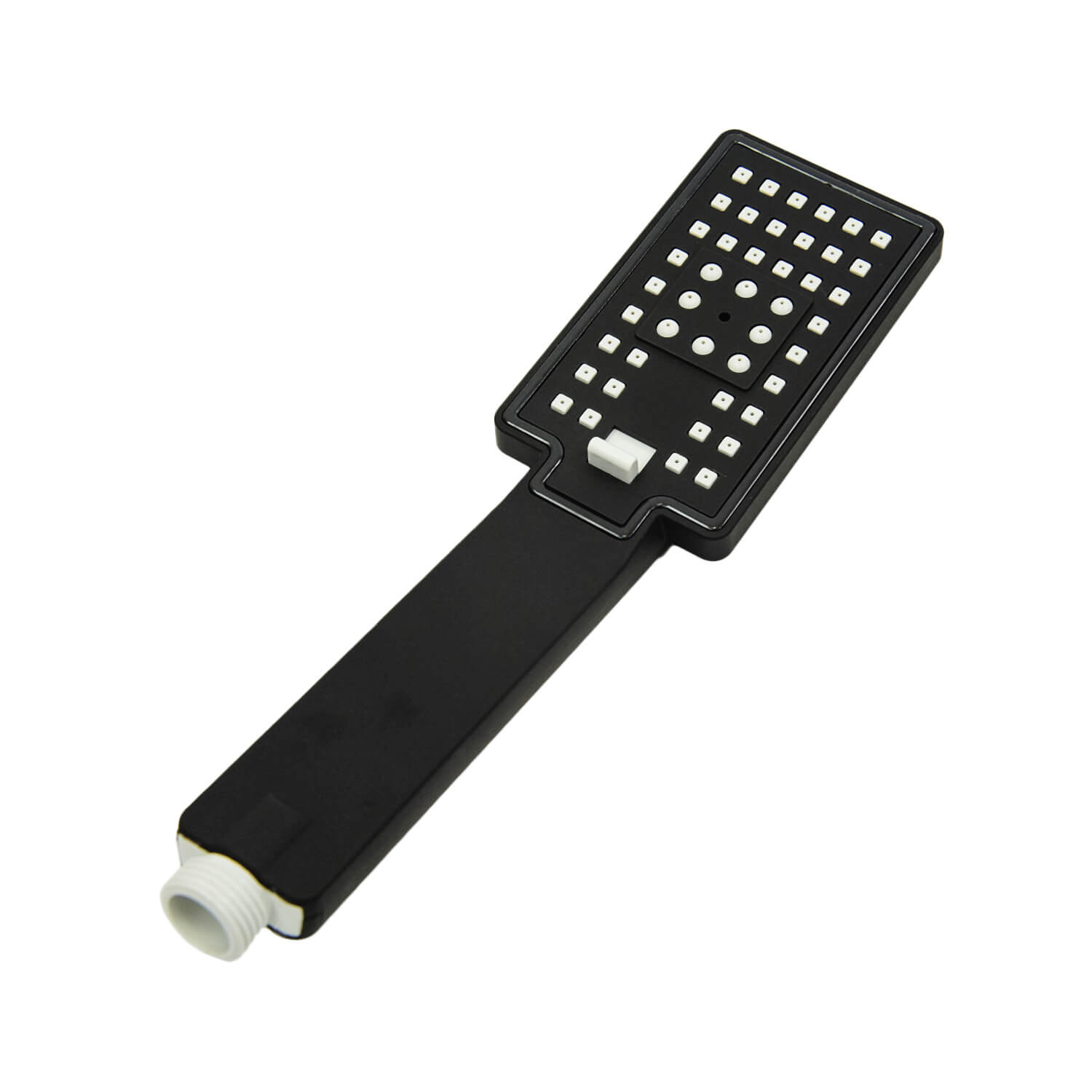 Душевой комплект с тропическим душем Quadro черный матовый предназначен для ванной или для душевой кабины в квартире или частном доме. Система тропический душ монтируется на стену и выглядит как металлическая стойка с матовым покрытием, оснащенная небольшим пластиковым контейнером для шампуней, мыла, мочалки и других предметов. Высота лейки достигает 225 мм. Верхний душ имеет квадратную форму и оснащен регулятором струи в трех режимах, при которых вода распыляется по-разному. Смеситель с изливом поворотным управляется рычажным способом. В комплект входят душевая система, штанга, пластиковая емкость и крепежные элементы.