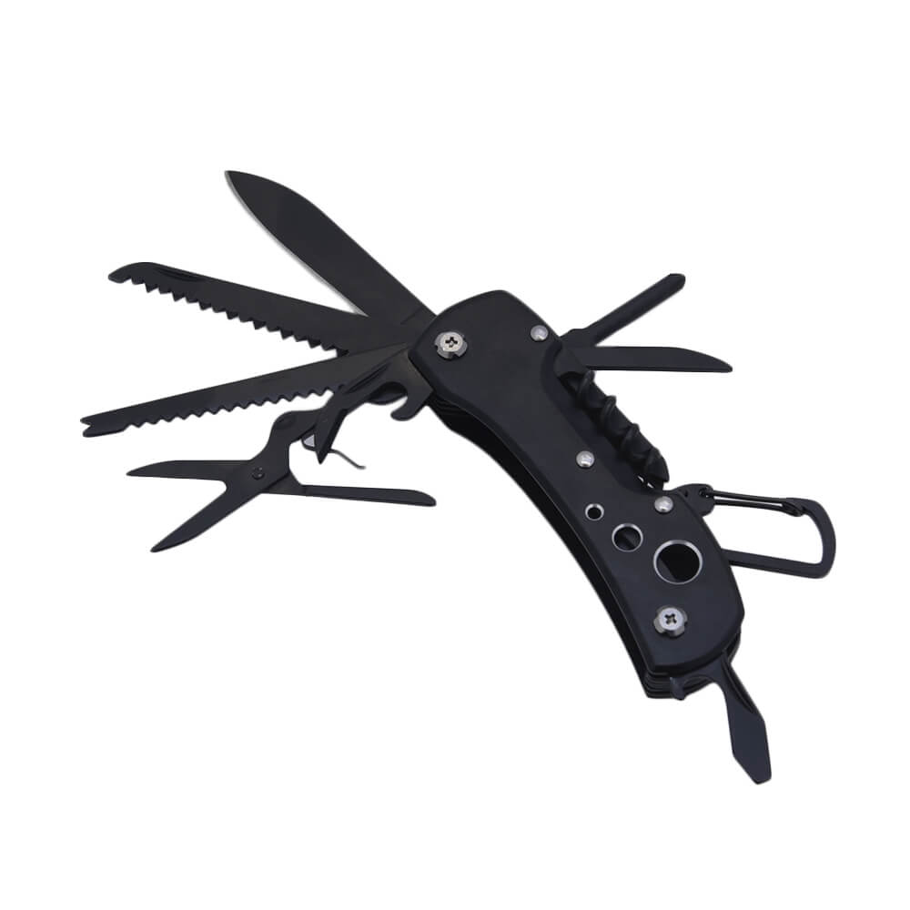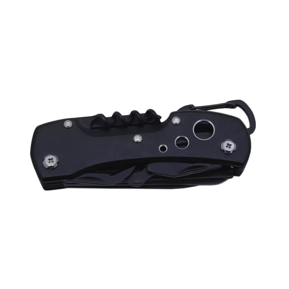 Многофункциональное устройство, включающее в себя двенадцать инструментов для выполнения различных операций. Мультитул содержит два ножа, две пилы с различным зубом, ножницы, отвертку, а также открывашки для консервов и бутылок, есть даже штопор. Приспособление выполнено из высококачественной стали, покрыто воронением. Мультитул компактно складывается и не занимает много места. Корпус устройства оснащен прочным карабином для крепления страховочного шнура.